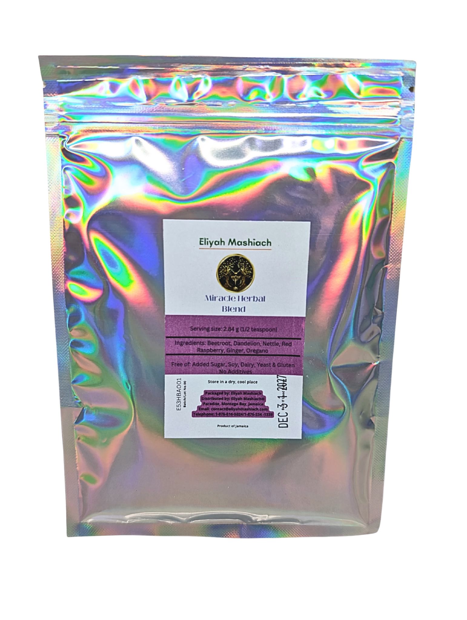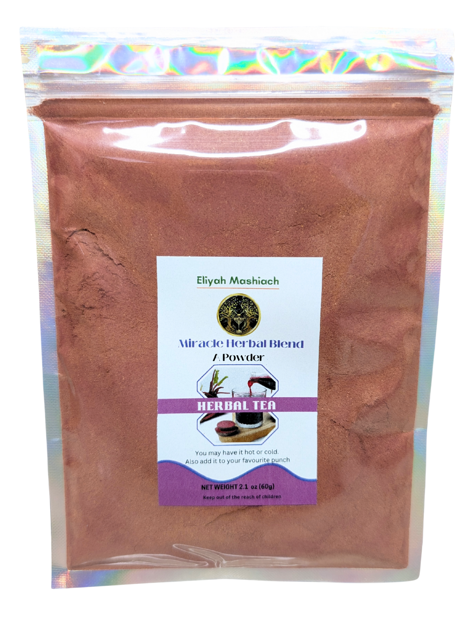 Eliyah Mashiach A-powder is made with : Beetroot, Red Raspberry, Nettle, Dandelion , Ginger, Yellow Dock.