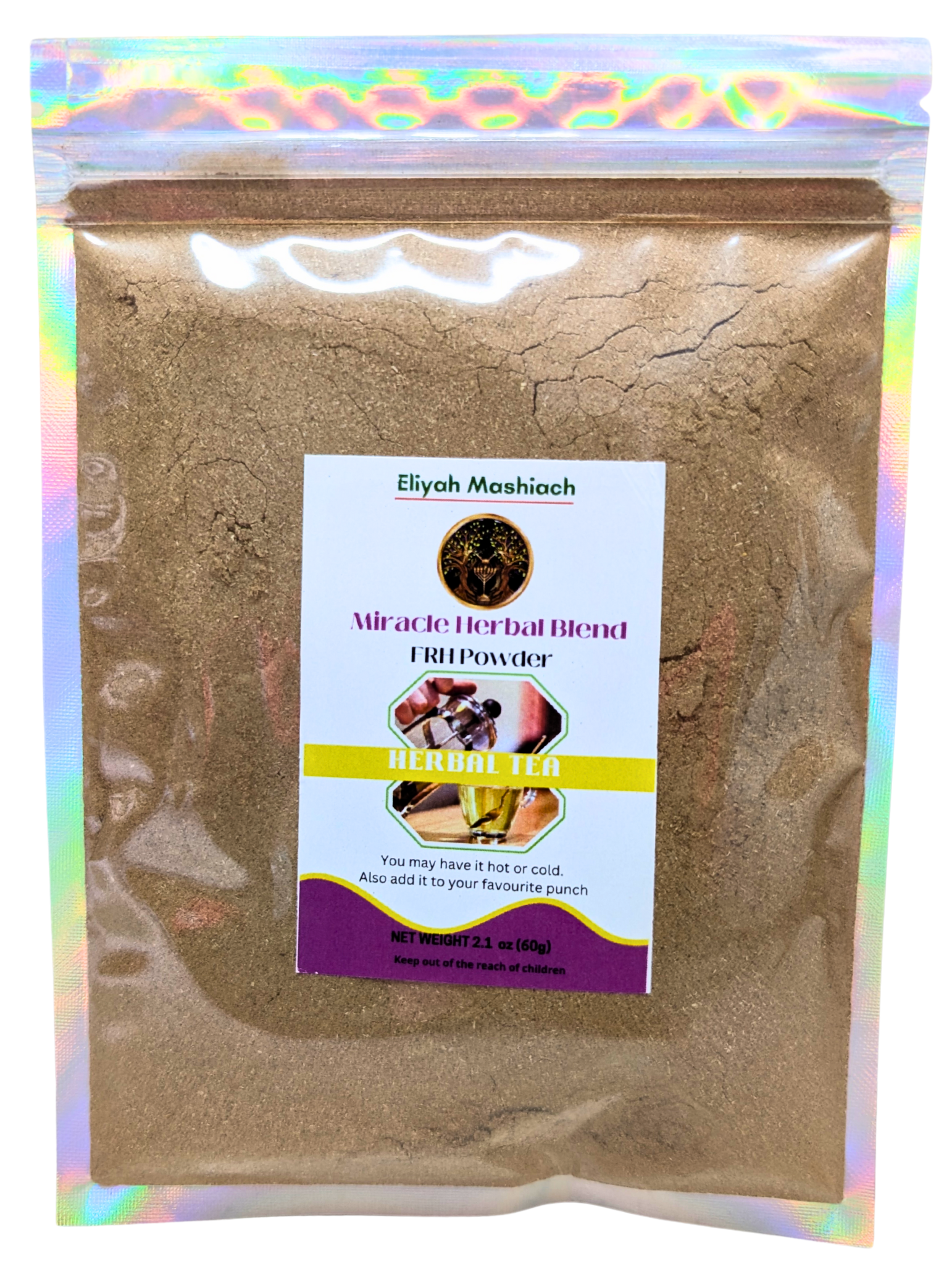 Mix ¼ to 1 teaspoon of the Eliyah Mashiach FRH-Powder Natural Blend with a cup of warm water, natural juice or smoothies once or twice daily.