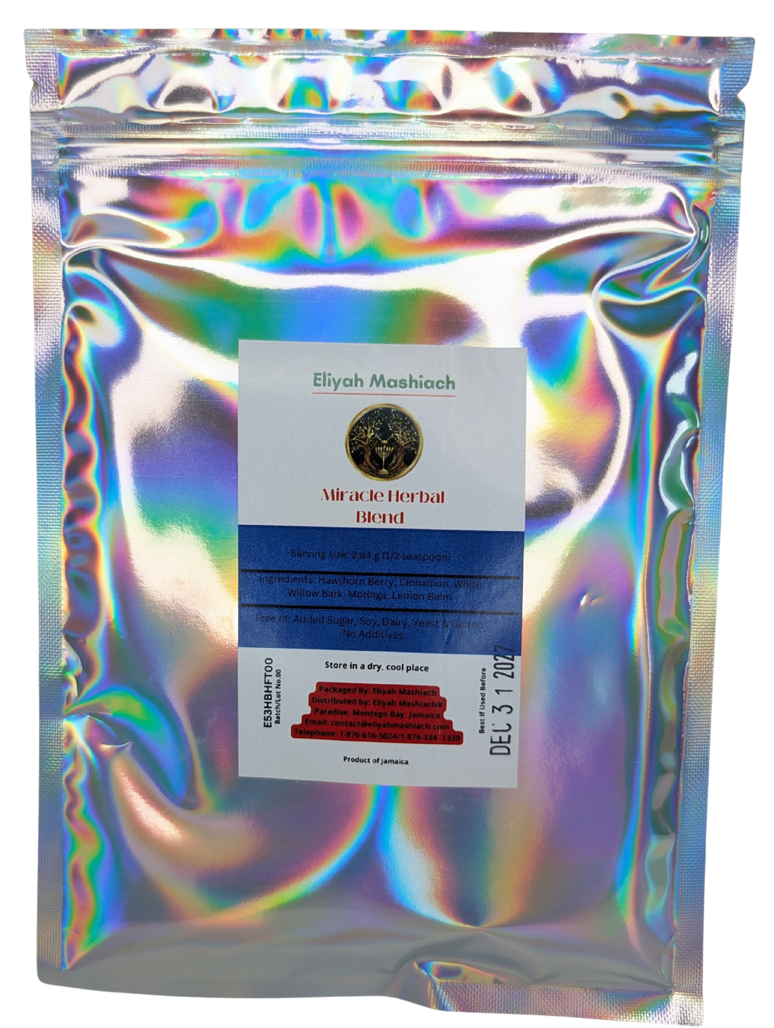 Eliyah Mashiach HFT-Powder is made with : Hawthorn Berry, Cinnamon, White Willow, Moringa,Lemon Balm.
