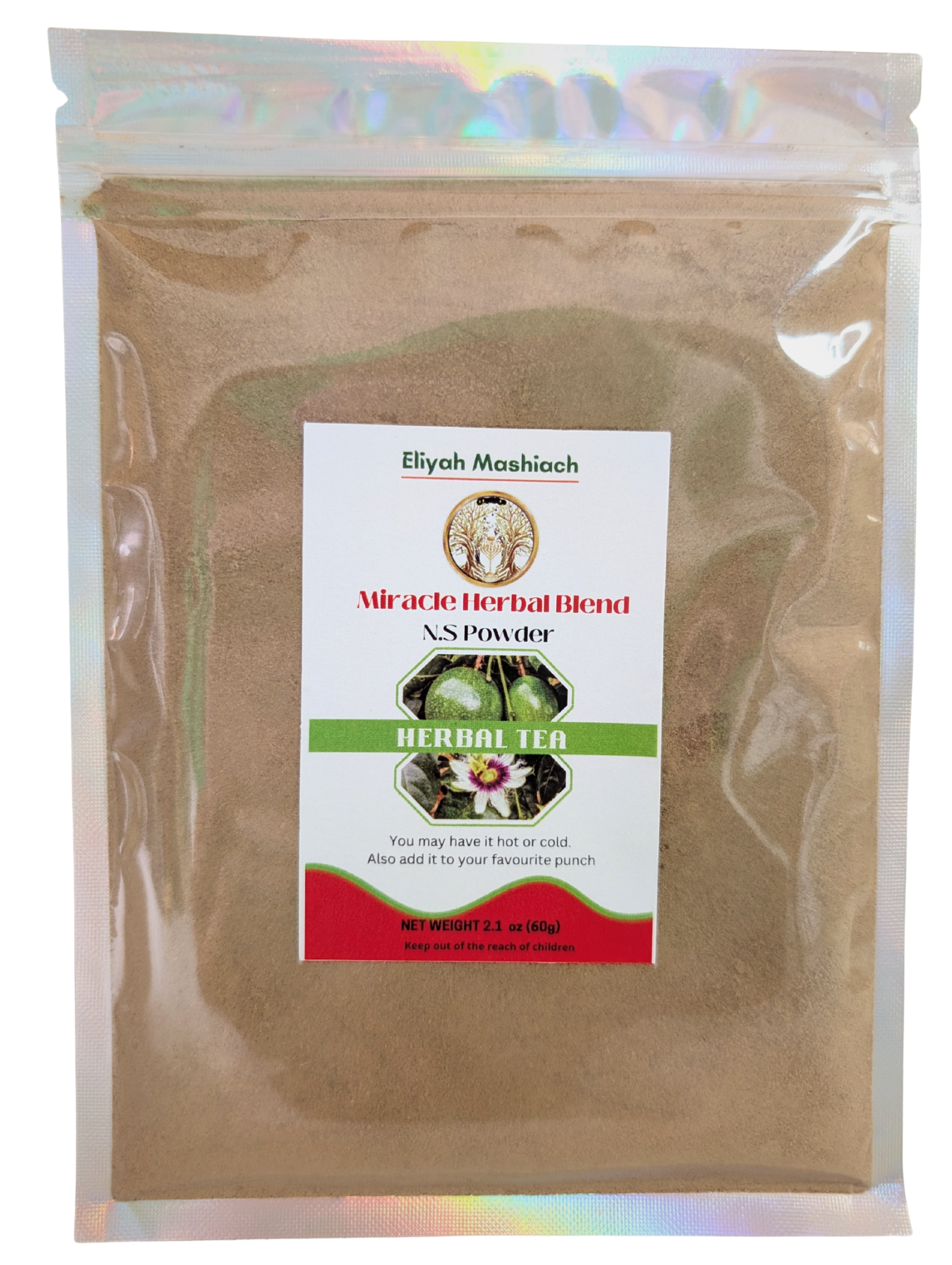 Mix ¼ to 1 teaspoon of the Eliyah Mashiach NS-Powder Natural Blend with a cup of warm water, natural juice or smoothies once or twice daily.