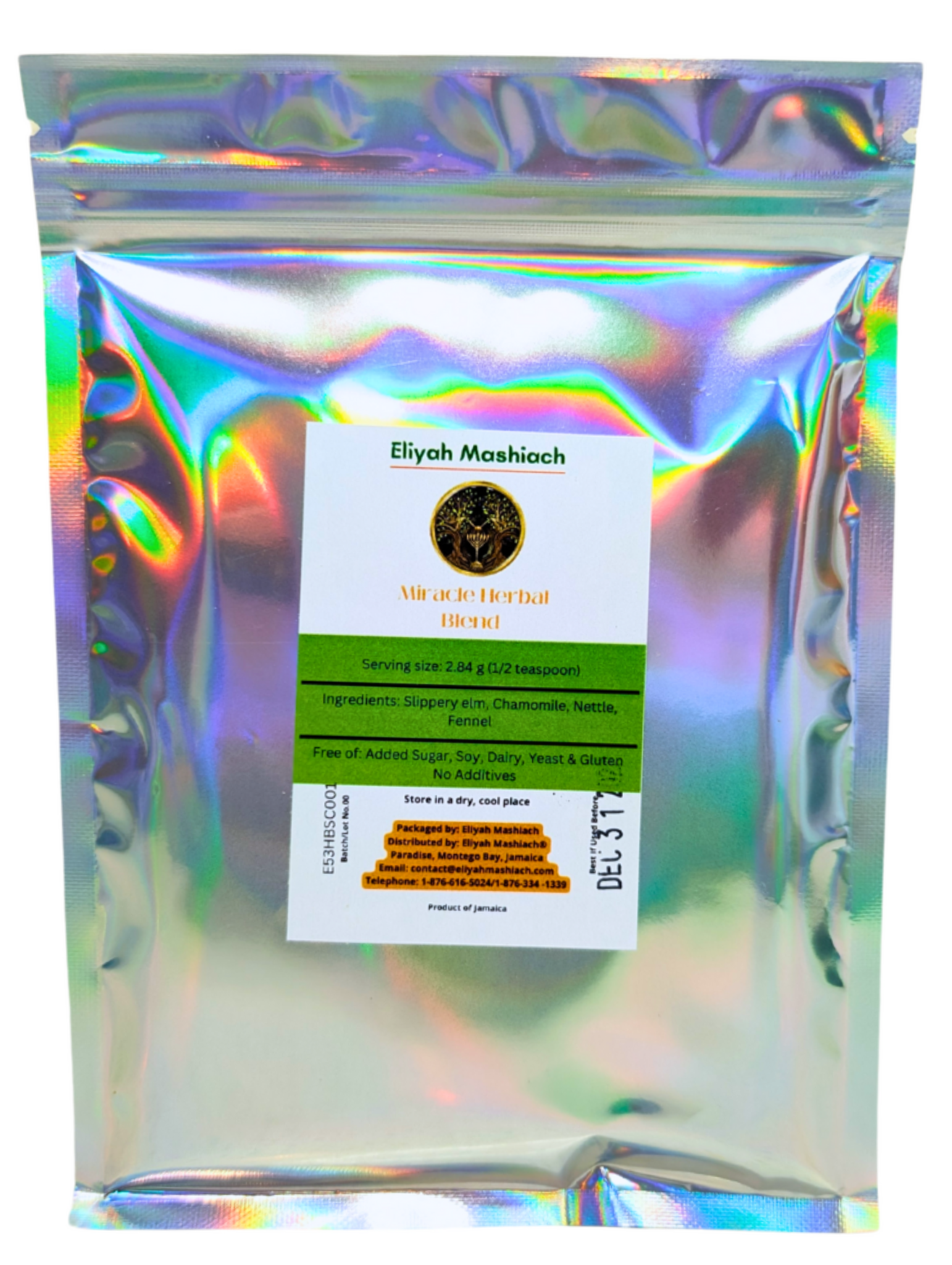 Eliyah Mashiach SC-Powder is made with : Slippery Elm, Nettle, Chamomile and Fennel.