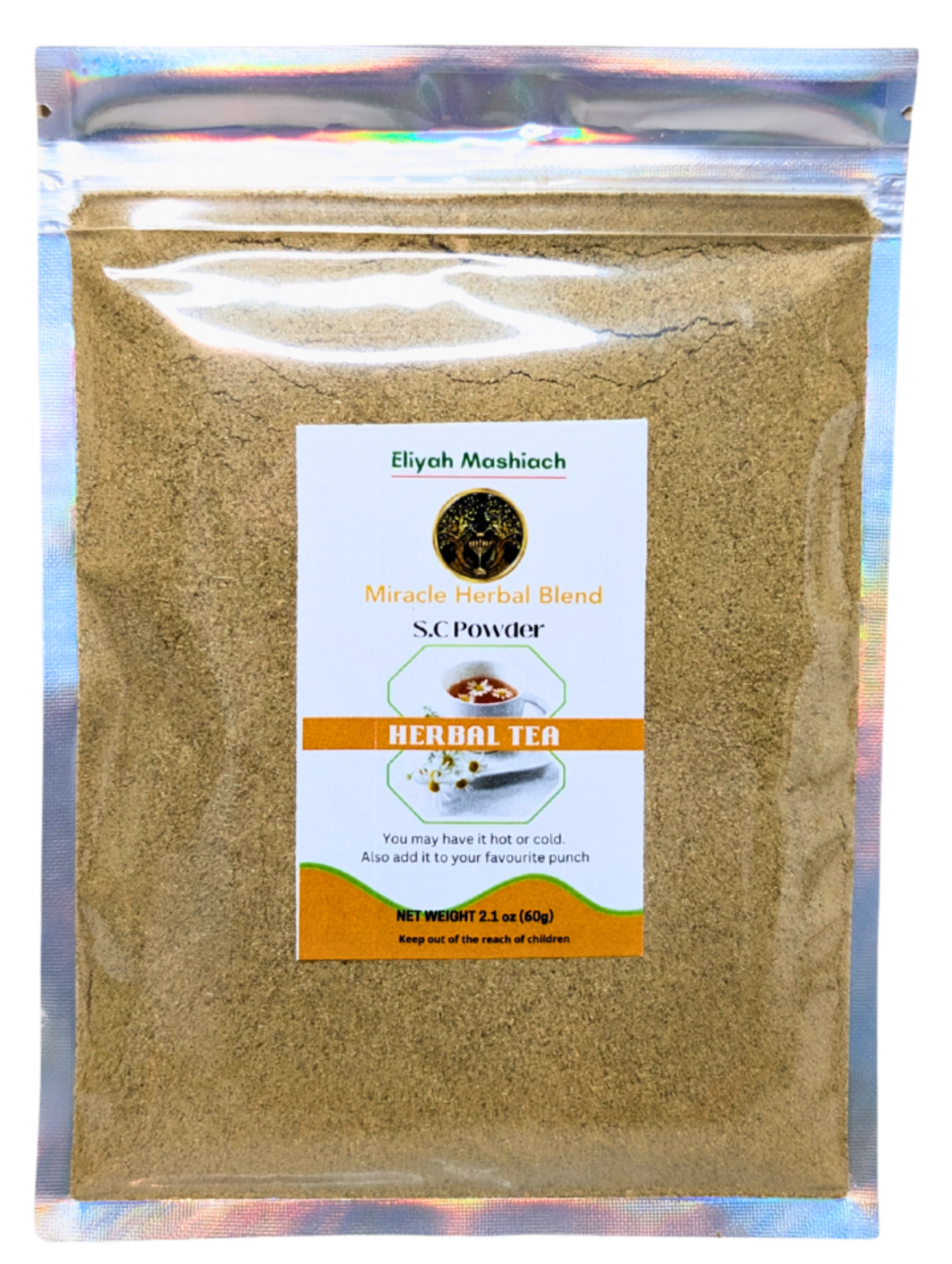 Mix ¼ to 1 teaspoon of the Eliyah Mashiach SC-Powder Natural Blend with a cup of warm water, natural juice or smoothies once or twice daily.